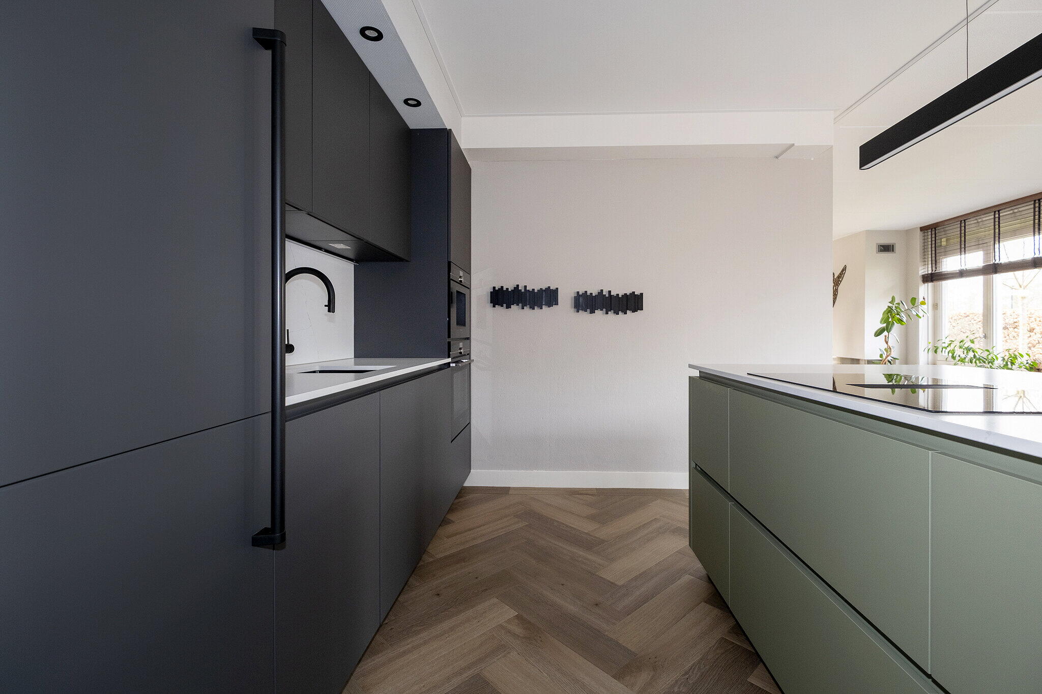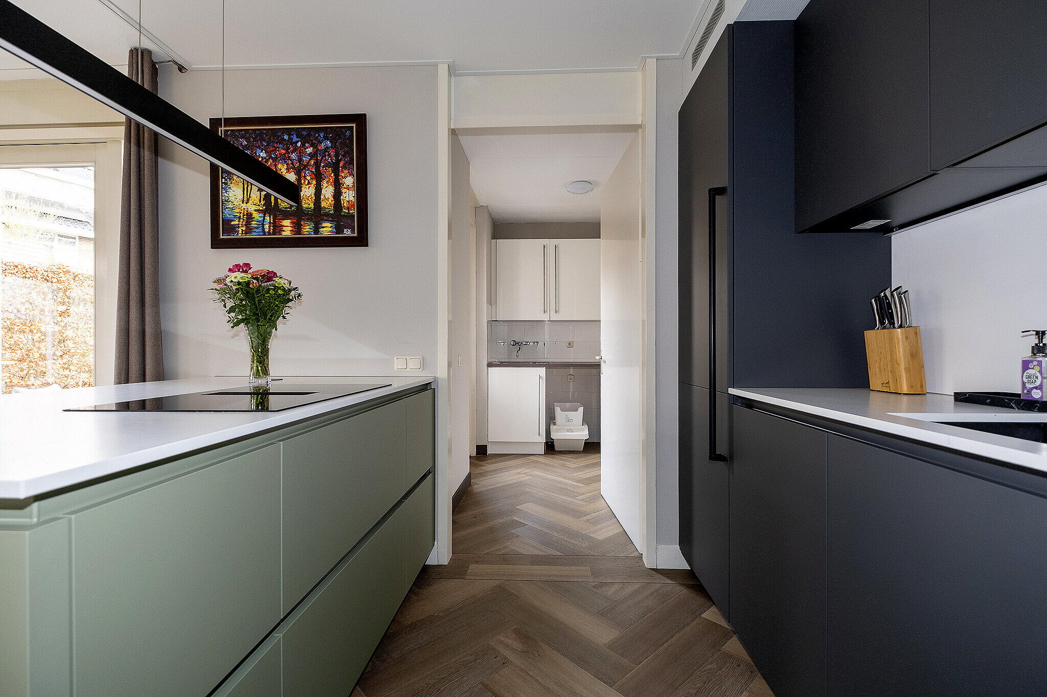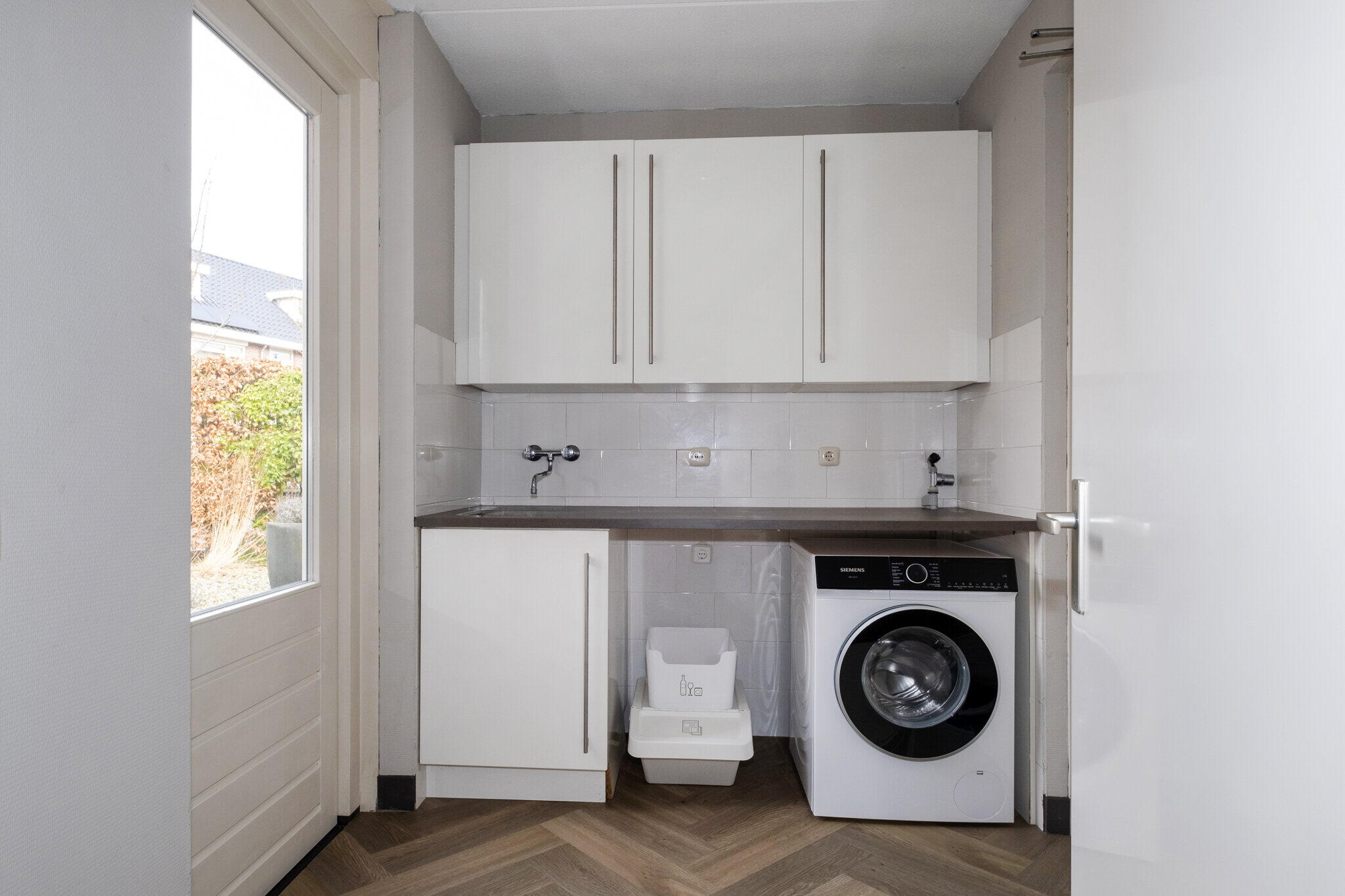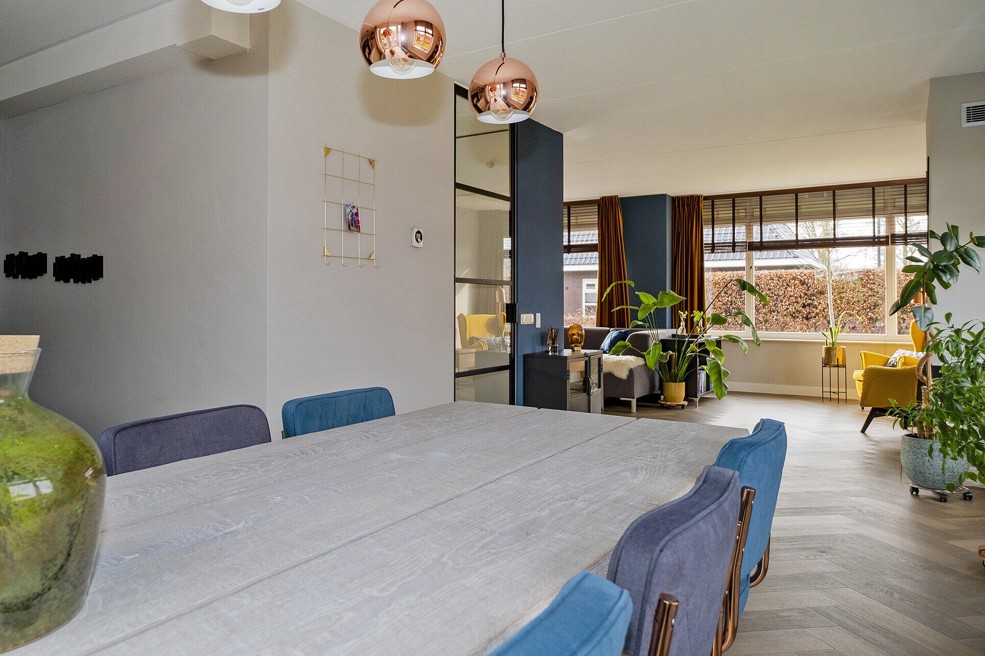 U komt binnen in een ruime hal met een toilet, meterkast en trapopgang. De royale woonkamer (ca. 47 m²) met fraaie pvc vloer is voorzien van vloerverwarming. De raampartijen rondom en openslaande tuindeuren maken dat de ruimte en verrassende lichtinval heeft. De moderne open keuken (ca. 10 m²) beschikt over een kookeiland, veel bergruimte en diverse inbouwapparatuur, zoals een koelkast, vaatwasser, combi-oven/magnetron, 4-pits inductiekookplaat met ingebouwde afzuiging (Novy), Quooker en koffiemachine. De bijkeuken heeft witgoedaansluitingen en volop bergruimte. Vanuit de bijkeuken is de garage bereikbaar. Aan de buitenzijde zijn op de zuid en westzijde van de woning rolluiken aangebracht.