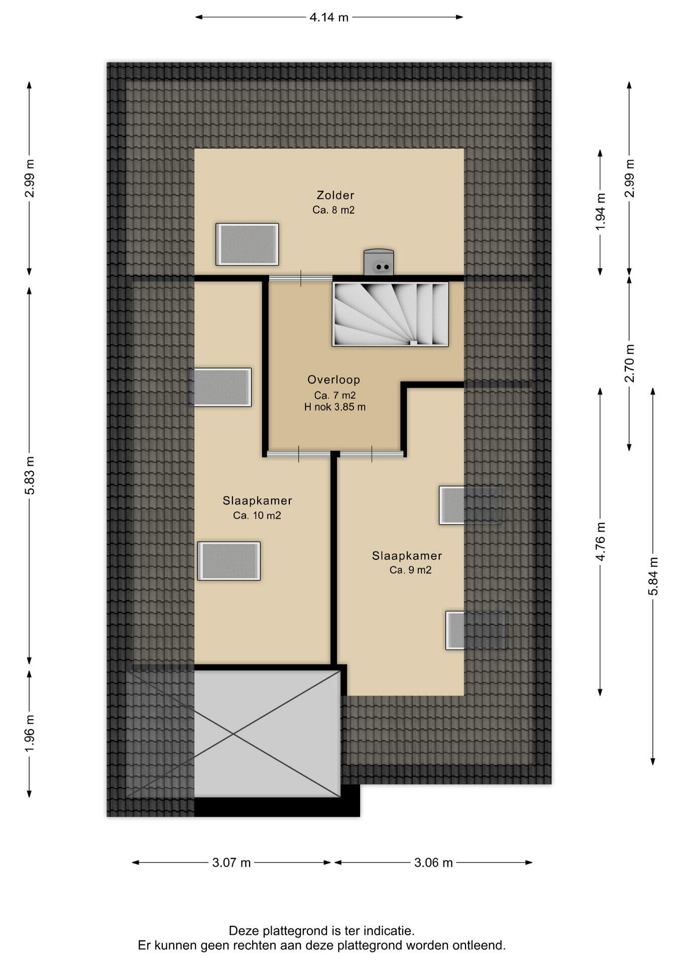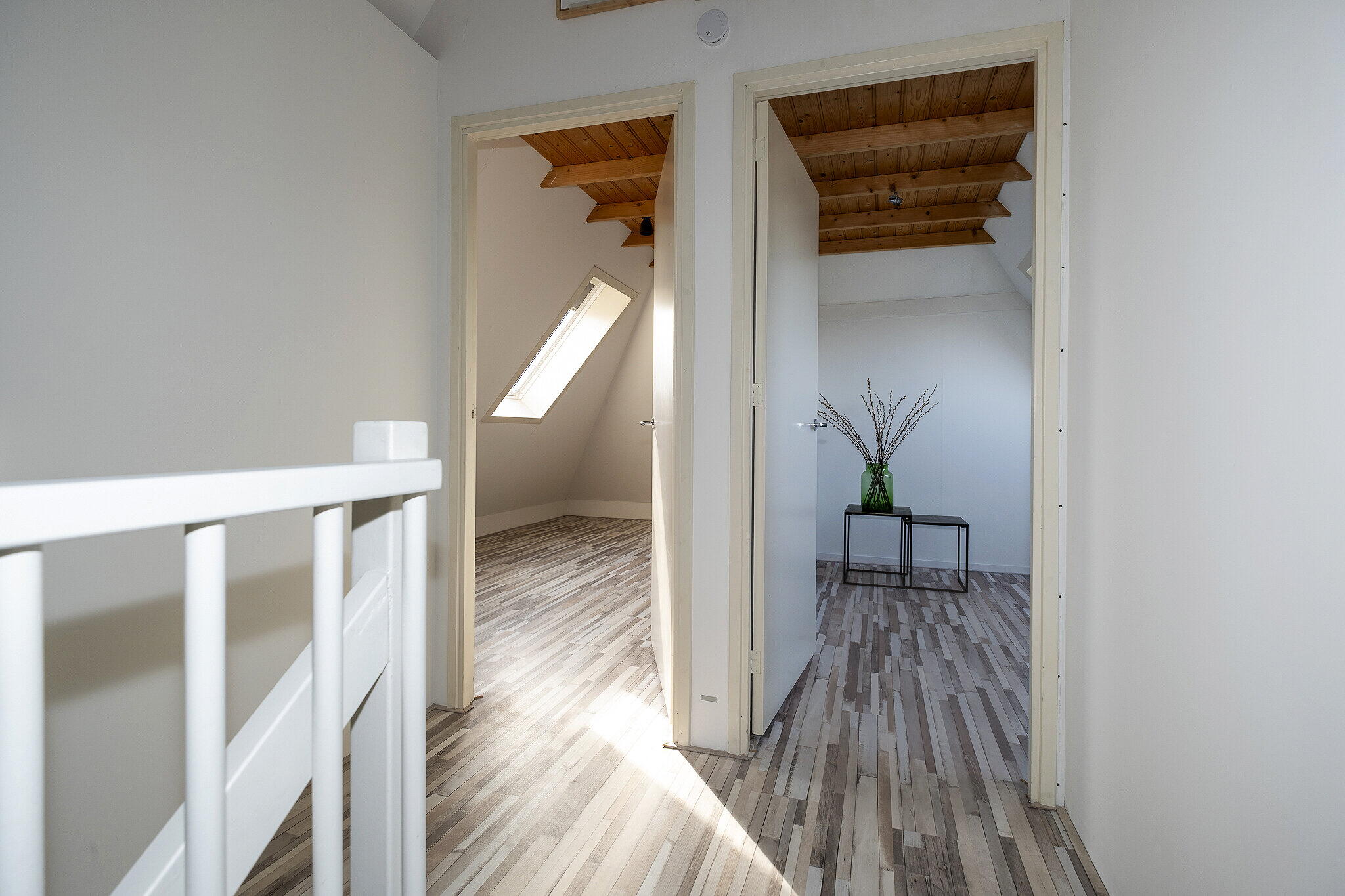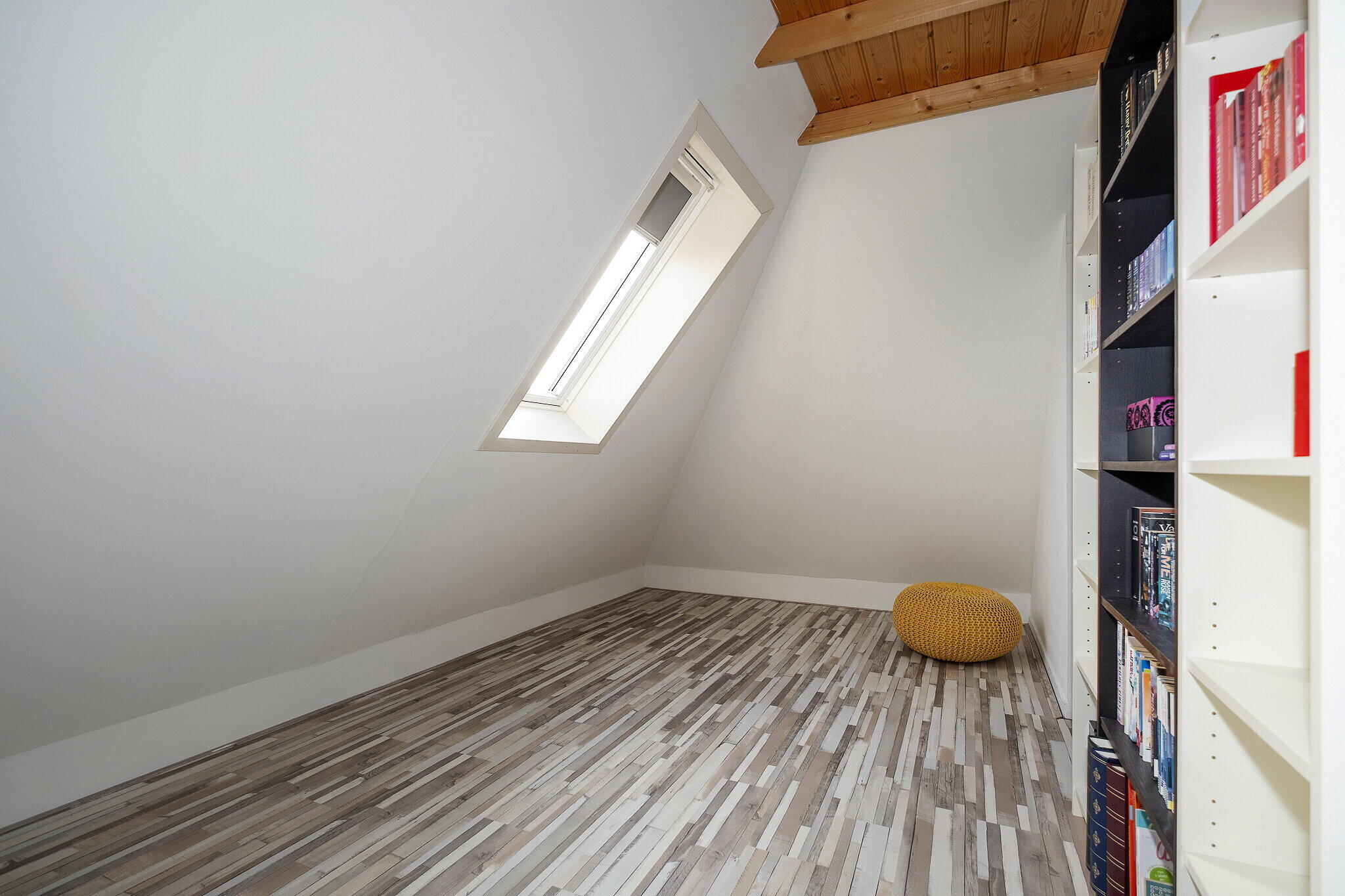 Op de tweede verdieping bevindt zich een overloop met twee slaapkamers (ca. 10 m² en ca. 9 m²). Tevens is er een berging (ca. 8 m²) waar ook de technische installaties zijn geplaatst. Door de vele dakramen geniet u ook op deze verdieping van voldoende lichtinval.